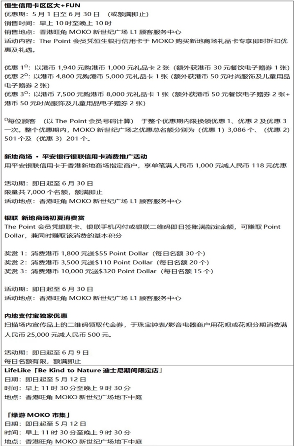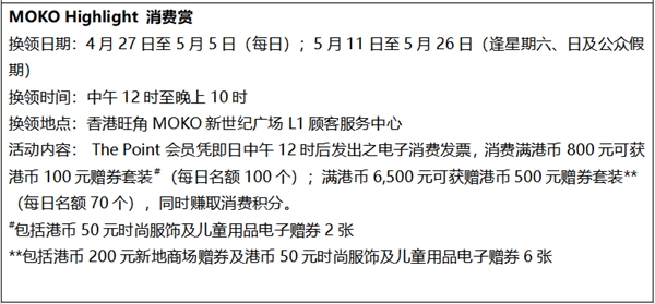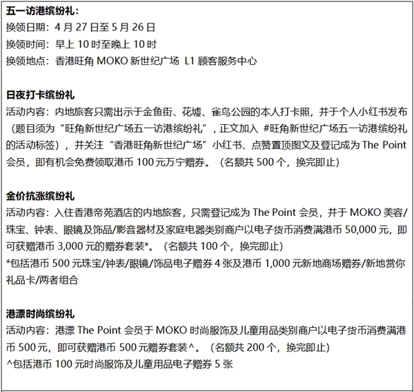 有關(guān)香港旺角MOKO新世紀廣場五一推廣活動詳情