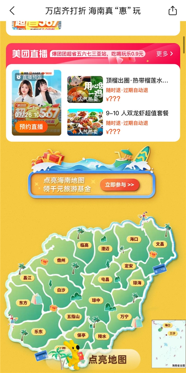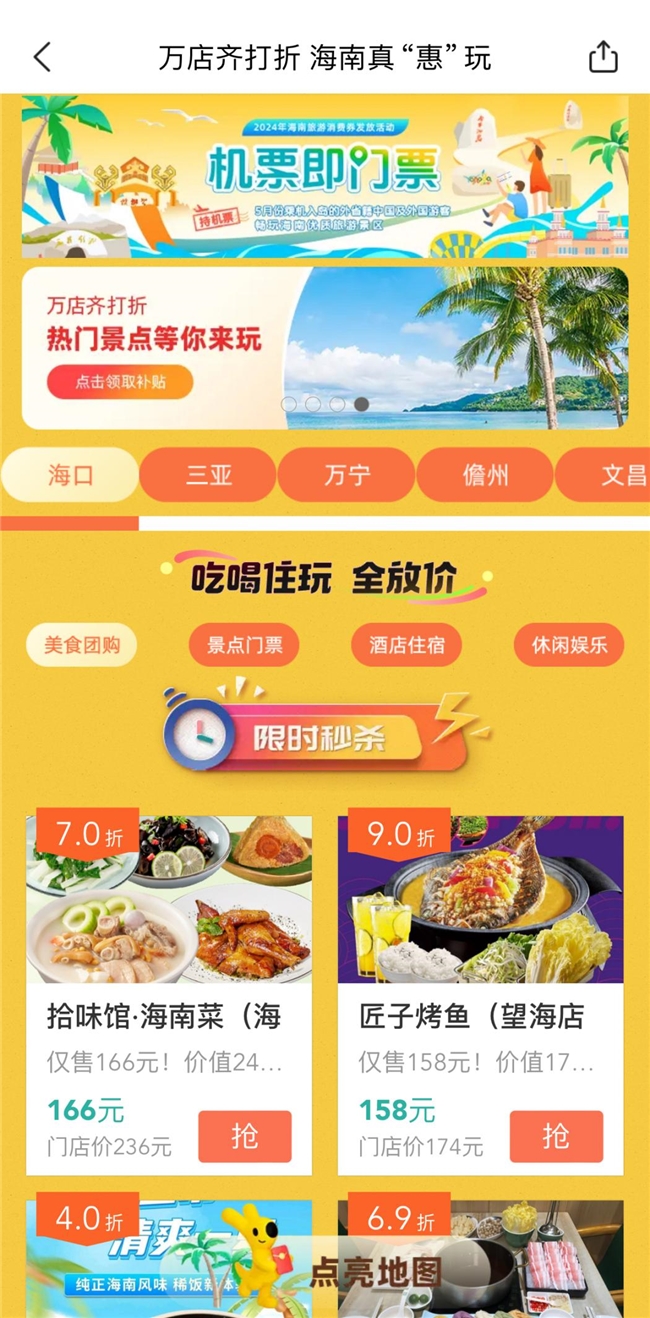 隨著暑期旅游高峰的到來,海南省旅游和文化廣電體育廳攜手美團共同打造的“萬店齊打折·海南真'惠’玩”活動正在如火如荼地進行中。