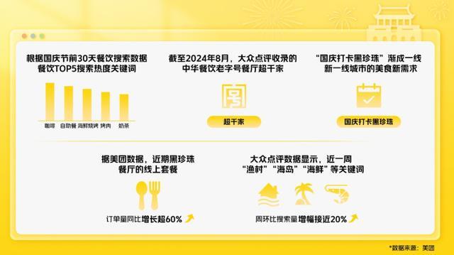 根據(jù)國(guó)慶節(jié)前30天餐飲搜索數(shù)據(jù),餐飲搜索熱度關(guān)鍵詞前五分別為:咖啡、自助餐、海鮮、烤肉、奶茶。