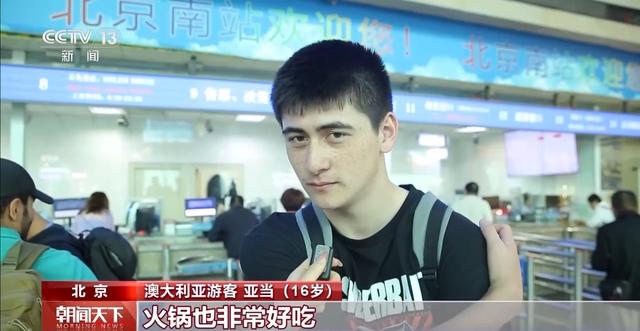澳大利亞游客 亞當(dāng)(16歲):燒烤、中式烤肉、火鍋非常好吃,比澳大利亞的好吃得多,因?yàn)槲覀兊氖澄镆话惚容^簡(jiǎn)單。
