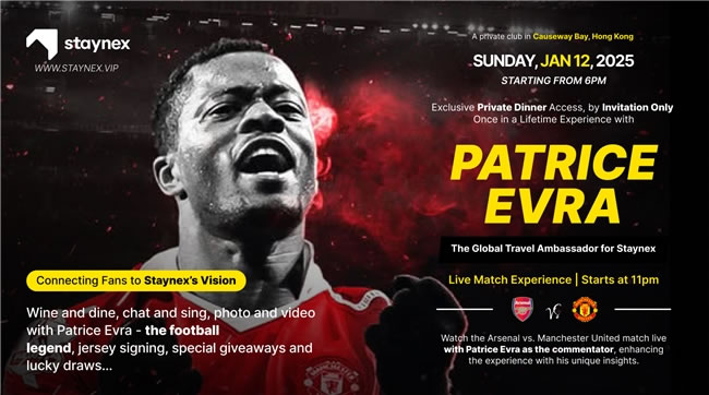 新加坡STAYNEX.VIP WEB3酒店入駐平臺攜手曼聯(lián)傳奇球星在香港銅鑼灣高級私人會(huì)所將舉辦2025年高級VIP跨年榮譽(yù)晚會(huì)。