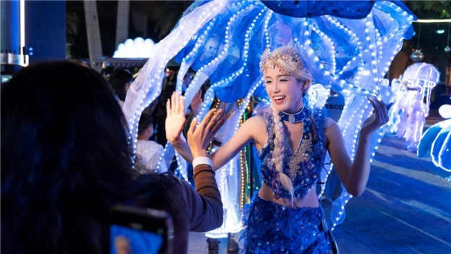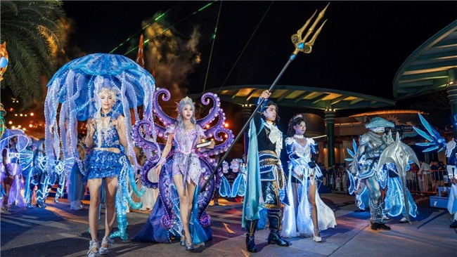 在本次活動中,特別設(shè)置的NPC(非玩家角色)演藝巡游活動成為一大亮點。亞特蘭蒂斯原創(chuàng)NPC“海洋七子”驚艷出場,包括擁有無限力量、守護光明正義的阿特拉斯王子,用優(yōu)雅的歌聲喚醒深海綺夢的人魚星娜,預(yù)言洞悉萬物、感知生命力量的章魚菲婭,智慧引領(lǐng)科技、把握未來方向的海龜拉斐爾,勇敢成為利刃、開啟榮耀之路的鯊魚坦克,在美麗的星光下閃耀夢幻光芒的水母歐若拉,以及愛能穿梭角落、點亮浩瀚海洋的海馬維納斯。演員們身著奇幻服飾,化身這些海洋生物形象,在園區(qū)內(nèi)巡游展演,與游客近距離互動,創(chuàng)造了難忘的度假記憶。