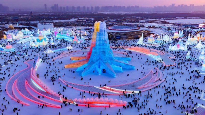 在冰雪大世界園區(qū),白天晶瑩剔透,夜晚流光溢彩,“亞洲同心”主塔、亞洲地標(biāo)建筑冰雕等成為熱門打卡地。500多米長的超級冰滑梯、雪圈滑道、冰上自行車、雪花摩天輪、冰迷宮等娛樂項(xiàng)目,“冰馬俑”、冰封玫瑰墻、許愿冰墻等新場景,不斷帶來驚喜。夢想大舞臺、無人機(jī)表演、煙花秀等演出累計(jì)上演1900余場。