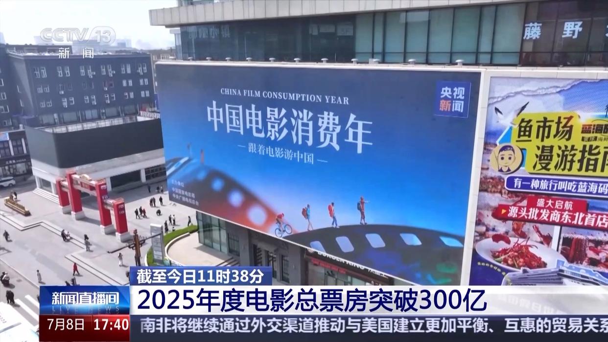 據(jù)網(wǎng)絡(luò)平臺數(shù)據(jù),截至今天(7月8日)11時38分,2025年度電影票房(含預(yù)售)突破300億,相較去年提前28天。