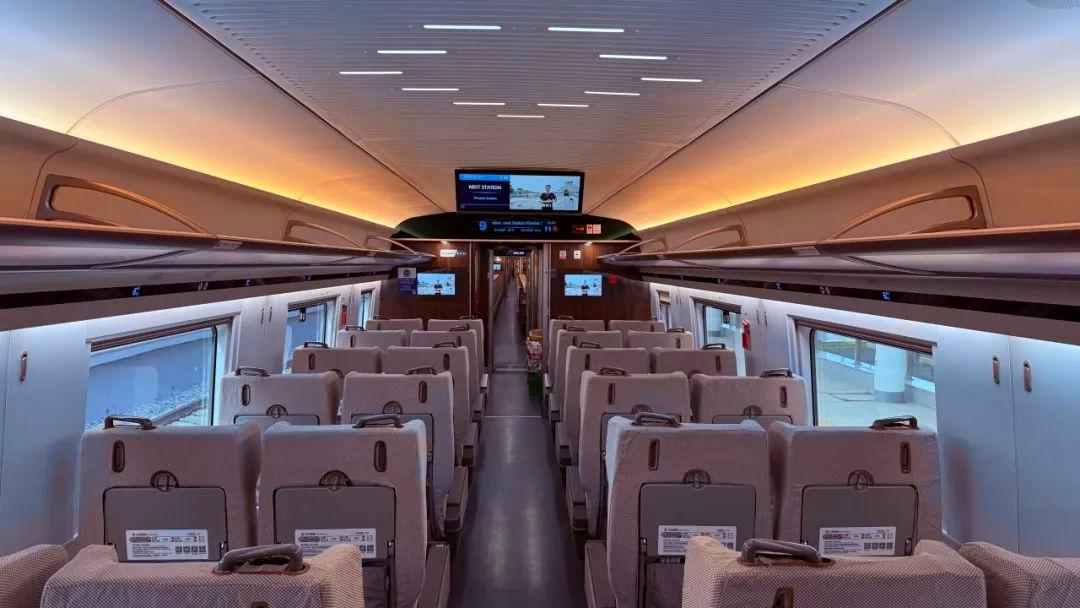以復(fù)興號(hào)智能動(dòng)車組為例:二等座通常采用“3+2”式排列,從左到右依次是ABCDF,A和F靠窗,C和D靠過(guò)道,B座位于A和C座位中間。