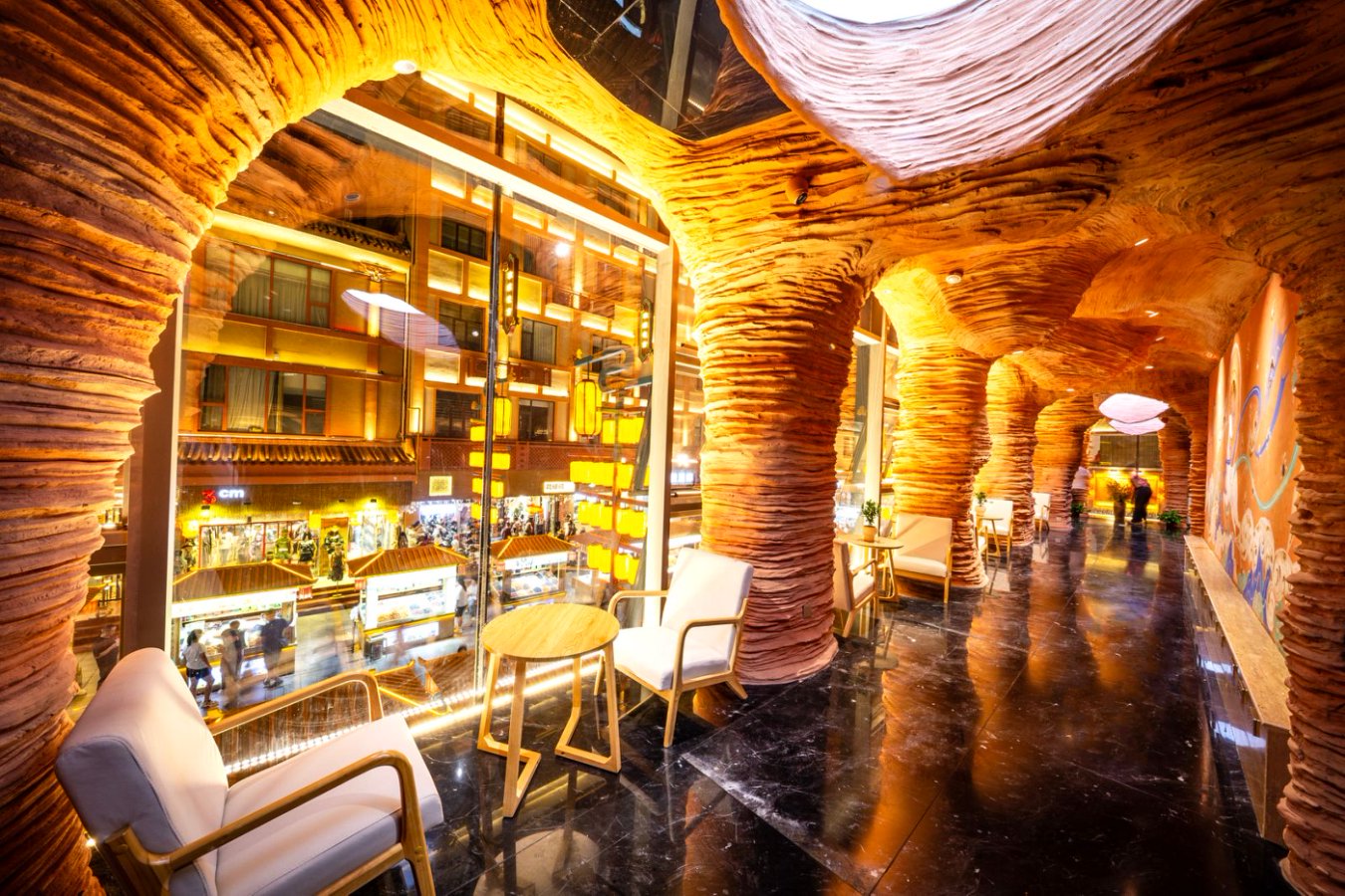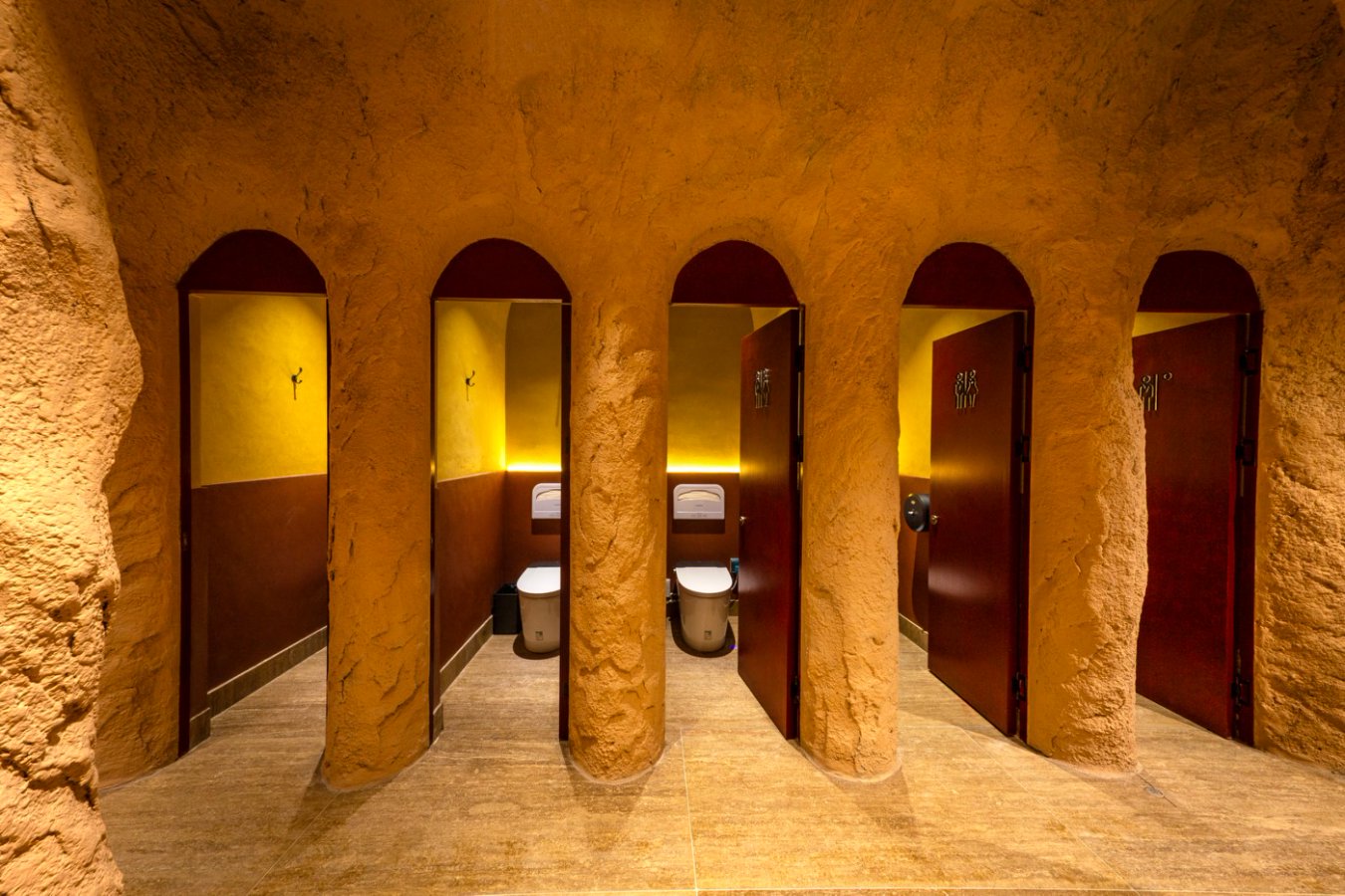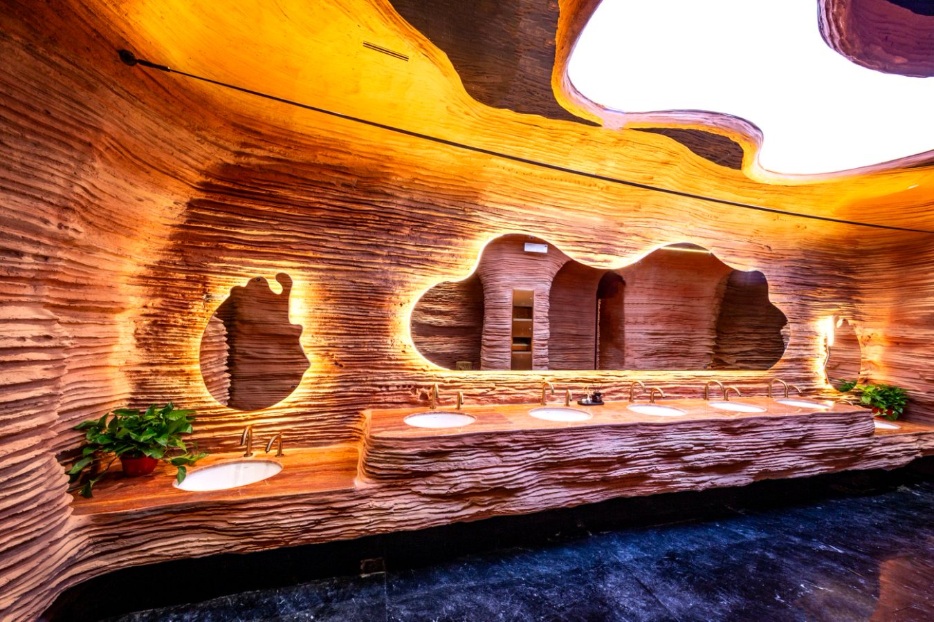 據(jù)了解,該項(xiàng)目對敦煌夜市“八景樓”進(jìn)行功能再造,融合敦煌文化基因:一層以“莫高至善”為主題,二層則呈現(xiàn)“雅丹秘境”,營造雄渾奇幻的空間意境。步入其中,便能感受到敦煌文化與九牧衛(wèi)浴產(chǎn)品的完美交融,一位來自北京的游客表示:“這和我印象中的公廁完全不一樣,升級后的超白玻幕墻與毗鄰的沙州樓形成震撼的 ‘古今對話’,夜幕降臨時(shí),燈光與幕墻交相輝映,宛如一座小型藝術(shù)館。”
