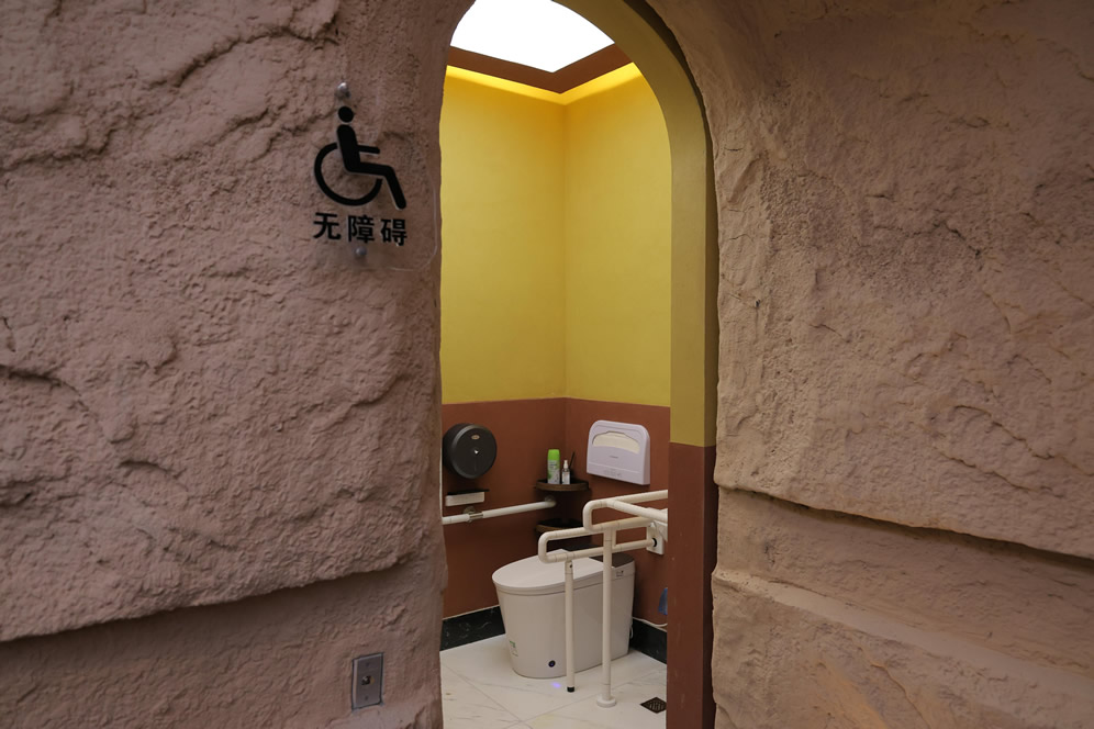 此外,九牧創(chuàng)新性地打造近千平米的“全齡友好型人文關(guān)懷樞紐”:母嬰群體專享獨(dú)立哺育室,配備抗菌護(hù)理臺(tái)、兒童安全座椅及自清潔穹頂系統(tǒng),打造潔凈溫馨的親子空間;長者及殘障人士無障礙專區(qū),設(shè)置低位感應(yīng)洗手池、防滑安全扶手及智能語音導(dǎo)航,實(shí)現(xiàn)自主無憂通行;還可通過潮汐衛(wèi)生間動(dòng)態(tài)調(diào)節(jié)廁位資源,解決代際照護(hù)如廁難題;全齡游客共享多功能服務(wù)島——休憩區(qū)配備茶飲自助機(jī)、行李寄存柜及文化展陳,滿足從嬰幼兒到銀發(fā)族的多元需求。