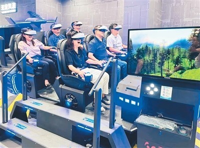 體驗館里,游客體驗《元創(chuàng)芷江》裸眼3D,重回1938年,身臨其境地看到1.9萬余名民工修筑二戰(zhàn)時期盟軍遠東第二機場——芷江機場的場景。近年來,紀念館不斷創(chuàng)新展陳方式,推出和平藝術(shù)中心“元宇宙”科技體驗館,以數(shù)字化“元宇宙”科技融合手段,打造愛國主義教育研學(xué)品牌,提升研學(xué)游附加值。體驗館分為14個體驗區(qū)域,運用VR、AR、3D裸眼等沉浸式技術(shù),為游客提供高度虛擬化沉浸式的芷江抗戰(zhàn)歷史故事體驗。
