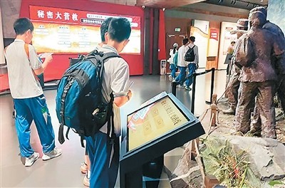 游客步入館內(nèi),仿佛踏入歷史的洪流。全息投影、文物陳列、場景復(fù)原等技術(shù)打造出數(shù)字化展陳空間。曾經(jīng)只能在文字和圖片中描繪的歷史場景,如今栩栩如生地呈現(xiàn)在眼前。在秘密大營救展區(qū),雕塑還原文化名人在游擊隊員護送下離開的場景,當觀眾點擊多媒體互動裝置選擇不同的撤退路線時,大屏幕會動態(tài)還原當時驚險的轉(zhuǎn)移路徑,讓人如同身在其中,真切感受到革命先輩在槍林彈雨中的英勇機智。來自廣州的黃同學(xué)說:“有了這些多媒體設(shè)備,讓我更直觀了解到當時槍林彈雨的危險場景,也更好地學(xué)習(xí)了東江縱隊的歷史。”