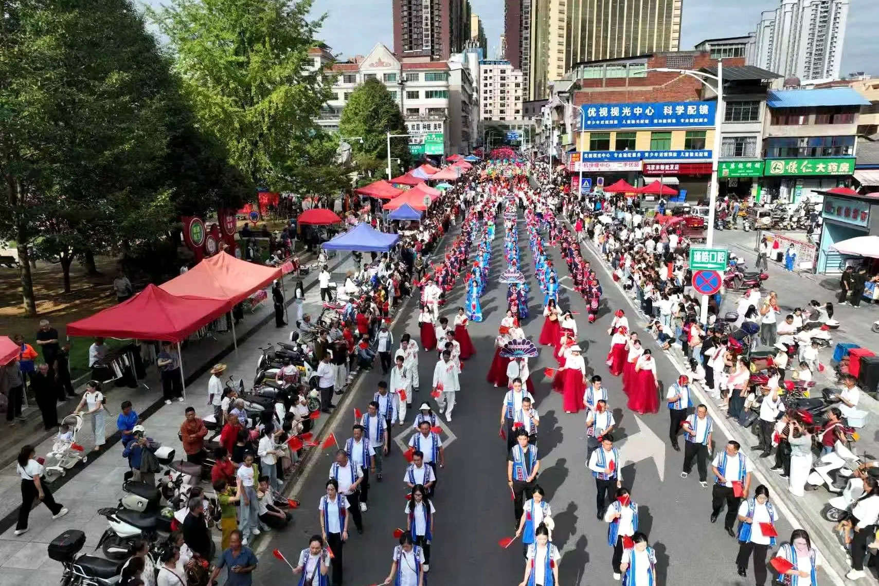 假期間,貴州黔南“秋飲穿越酒”獨(dú)山花燈暨“村戲”展演活動(dòng)在獨(dú)山主城區(qū)舉行,活動(dòng)以“巡游+展演+市集”為主線,匯集重慶、廣西、云南等多地表演者,組織27支巡游隊(duì)伍開展巡演,沿途呈現(xiàn)舞獅、“踩燈”及現(xiàn)代花燈歌舞,吸引群眾駐足互動(dòng)。