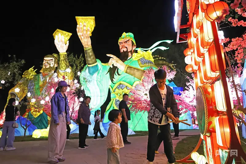 游客在桃園三結義燈組前凝望(央廣網發(fā) 熊華明 攝)