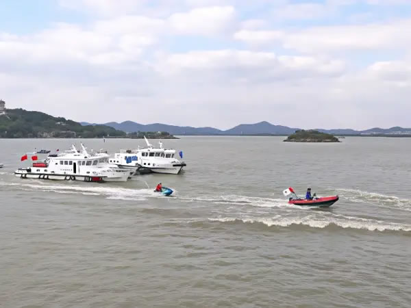 無錫市交通運輸綜合行政執(zhí)法支隊、蘇州市交通運輸綜合行政執(zhí)法支隊、常州市交通運輸綜合行政執(zhí)法支隊、湖州市交通運輸綜合行政執(zhí)法支隊、蘇州市交通運輸應(yīng)急指揮中心、無錫市公安局水上分局、無錫太湖黿頭渚旅游集團有限公司、無錫市藍天救援隊等兩省四市的交通運輸部門、文旅企業(yè)、社會救援力量參加演練。