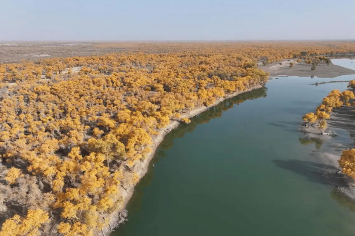 胡楊是荒漠生態(tài)系統(tǒng)的重要維系者。它耐寒、耐旱、耐鹽堿、抗風(fēng)沙,被譽(yù)為“沙漠守護(hù)神”,對(duì)于穩(wěn)定荒漠河流地帶的生態(tài)平衡、防風(fēng)固沙、調(diào)節(jié)氣候、保護(hù)生物多樣性具有不可替代的作用。近年來(lái),庫(kù)車(chē)市持續(xù)加大胡楊林保護(hù)力度,通過(guò)引洪灌溉、圍欄封育、直升機(jī)飛防等多種措施,讓胡楊林盡顯生機(jī)。同時(shí),塔里木鎮(zhèn)還通過(guò)發(fā)展胡楊觀光旅游,帶動(dòng)農(nóng)產(chǎn)品銷(xiāo)售和農(nóng)戶增收。