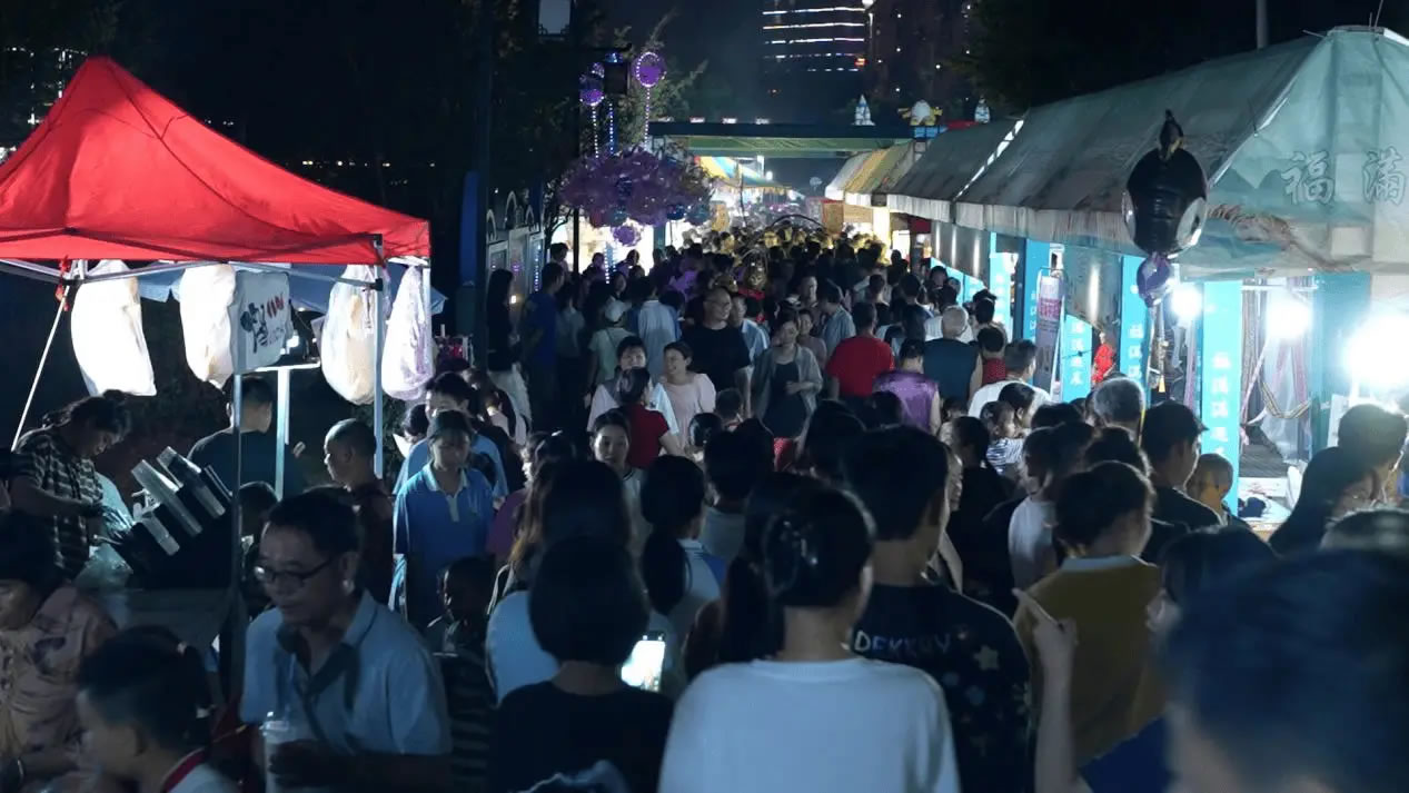 活動(dòng)現(xiàn)場(chǎng),產(chǎn)品展銷、非遺展演、親子游樂(lè)、特色美食四大板塊同步開啟,非遺火壺、浪漫銀河冷焰瀑布秀、非遺打鐵花等輪番上演。活動(dòng)首晚便吸引市民游客超5000人次,叫賣聲、音樂(lè)聲交織,摩肩接踵的人群中涌動(dòng)著消費(fèi)熱潮。