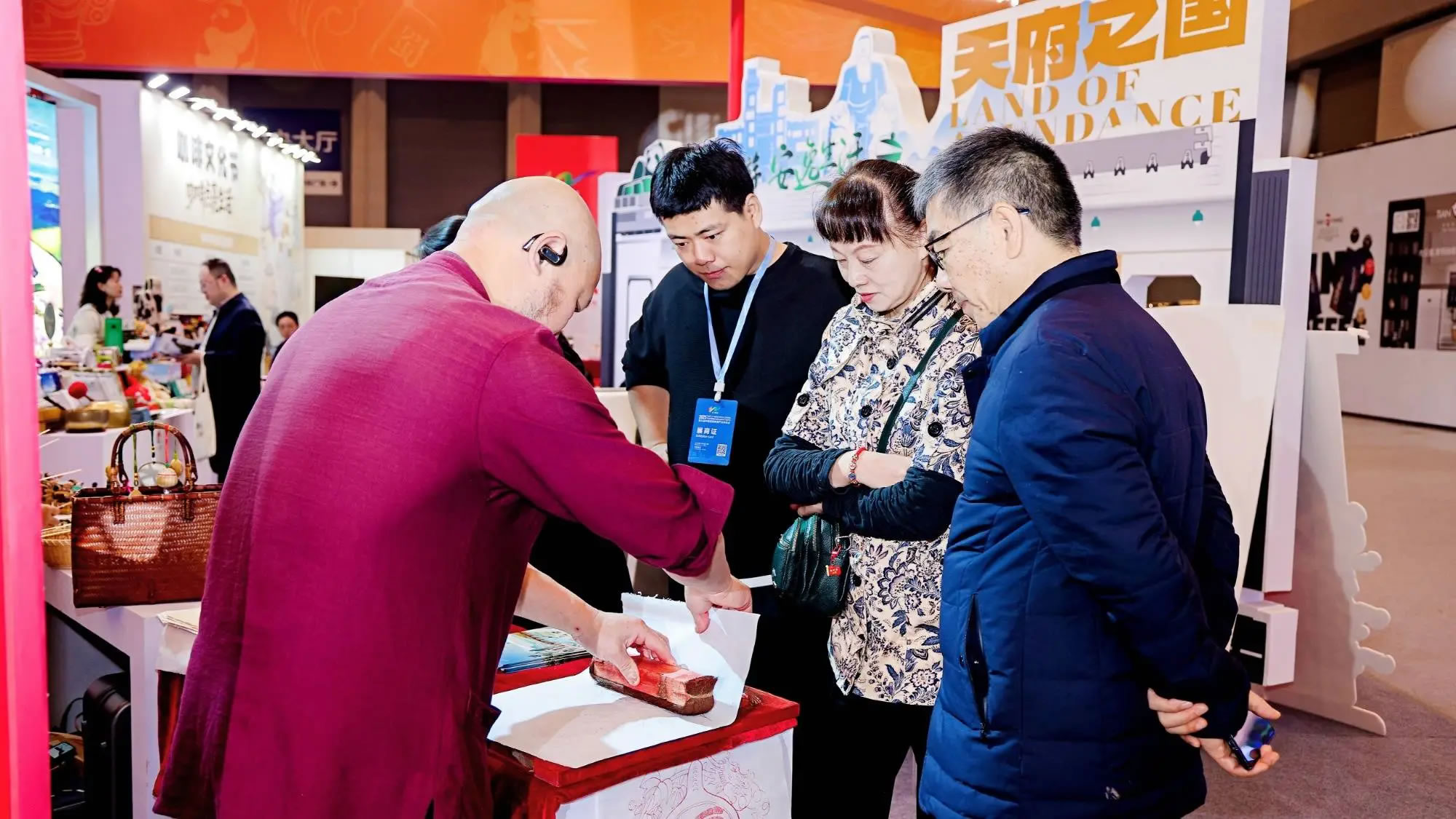 本次四川展臺位于展會核心區(qū)域,圍繞熊貓家園、古蜀文明、世界級旅游風(fēng)景道等主題打造展區(qū),F(xiàn)場不僅有諸葛羽扇綸巾杯套組等文創(chuàng)產(chǎn)品、缽缽雞等天府美食展示,宜賓面塑、長寧竹編等非遺活態(tài)體驗,還通過川劇變臉表演、“安逸熊貓”人偶巡游營造沉浸式氛圍。同時,線下文旅咨詢區(qū)提供線路與政策解讀,百萬粉絲達(dá)人巡館直播、“安逸直播間”系列活動同步開展,實現(xiàn)“線下體驗+線上云看展”雙向聯(lián)動。