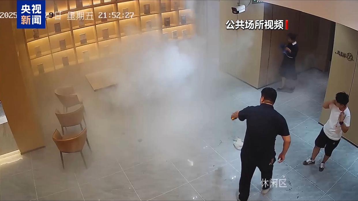 類(lèi)似驚險(xiǎn)一幕也發(fā)生在新疆。今年8月,喀什一酒店大廳內(nèi)公共場(chǎng)所視頻顯示,一游客身上的挎包突然冒煙,很快“砰”的一聲燃起大火,火星四濺,引發(fā)現(xiàn)場(chǎng)一片驚呼。游客趕緊將包甩出,工作人員聞聲趕來(lái),發(fā)現(xiàn)起火的就是充電寶。工作人員立刻拿來(lái)滅火器將明火撲滅。