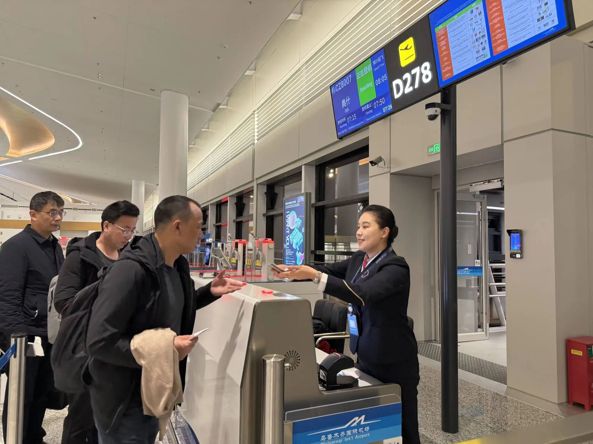 南航新疆分公司成立專項(xiàng)保障小組,圍繞航班調(diào)度、地面服務(wù)、機(jī)組籌備、通關(guān)協(xié)調(diào)等環(huán)節(jié)制定全流程預(yù)案。依托中吉雙向免簽政策紅利,南航在F島國際值機(jī)區(qū)開設(shè)復(fù)航專屬保障專柜,精選業(yè)務(wù)骨干全程負(fù)責(zé)證件核驗(yàn)、行李規(guī)范、出境流程咨詢等服務(wù)。通過提前梳理旅客信息、預(yù)判出行需求,搭配多臺(tái)支持中、英、俄等58國語言實(shí)時(shí)互譯的智能翻譯設(shè)備,破解跨境溝通障礙,確保出入境流程、行李規(guī)定等信息傳遞零誤差,助力旅客快速通關(guān)。保障小組還從證件核對(duì)到登機(jī)引導(dǎo),全程跟進(jìn)特殊旅客需求,提供全方位貼心服務(wù)。