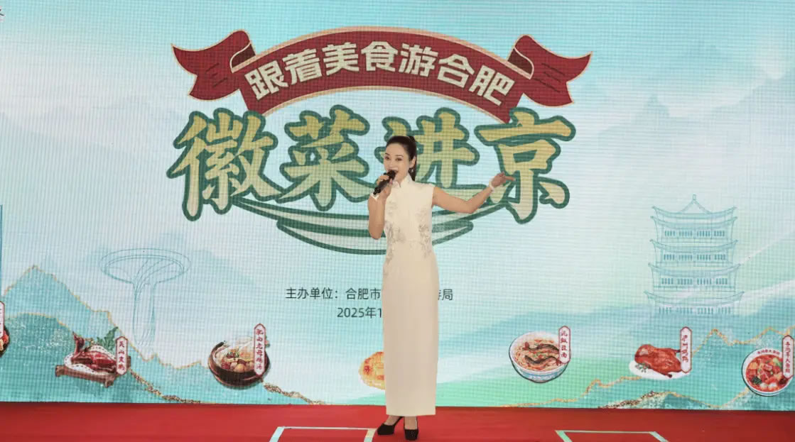 18:30,活動正式拉開帷幕,美食宣傳片帶觀眾在線“品嘗”徽味的獨(dú)特魅力和徽廚的匠心故事;現(xiàn)場演繹的黃梅戲唱腔婉轉(zhuǎn),將江淮柔情融入京華夜色;合肥市文旅局代表登臺推介,帶眾人感受合肥這座“科里科氣”與“文里文氣”并存的城市魅力。