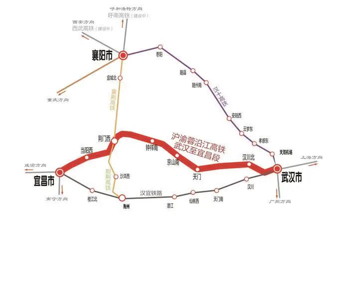 滬渝蓉高鐵武宜段位于湖北省境內(nèi),起自武漢市,經(jīng)天門(mén)市、荊門(mén)市,終至宜昌市。線路正線全長(zhǎng)314公里,設(shè)計(jì)時(shí)速350公里。開(kāi)通后,宜昌至武漢的鐵路旅行時(shí)間將從目前的2小時(shí)大幅壓縮至最快1小時(shí)09分。