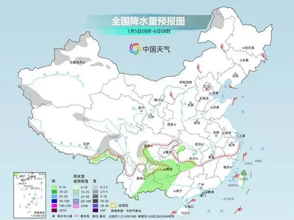 具體來看,中央氣象臺預計,今天,西北地區(qū)東南部、河南西部、湖北西部、川西高原北部、貴州西北部、青海南部、西藏南部和東部等地部分地區(qū)有小到中雪或雨夾雪;四川盆地、湖北大部、湖南北部、貴州中東部、云南大部等地部分地區(qū)有小雨,其中,云南南部等地部分地區(qū)有中雨。