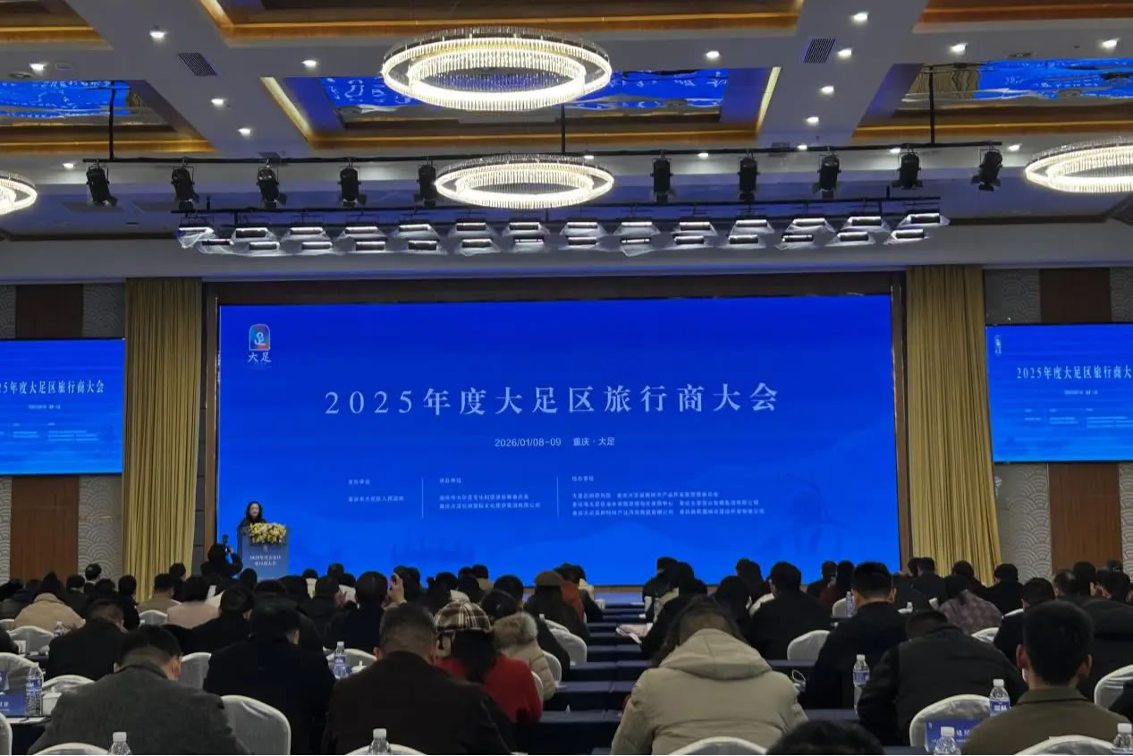 1月8日,2025年度大足區(qū)旅行商大會在重慶大足石刻學(xué)術(shù)報告廳舉行。大會不僅發(fā)布“石中三界 石外桃源”資陽大足石窟石刻文物主題游徑,還同步推出景區(qū)場景升級、文旅產(chǎn)品上新等多項舉措,以川渝聯(lián)動為核心,以業(yè)態(tài)創(chuàng)新為支撐,全面激活成渝地區(qū)雙城經(jīng)濟(jì)圈文旅消費潛力,為游客帶來兼具文化深度與體驗溫度的旅游新選擇。