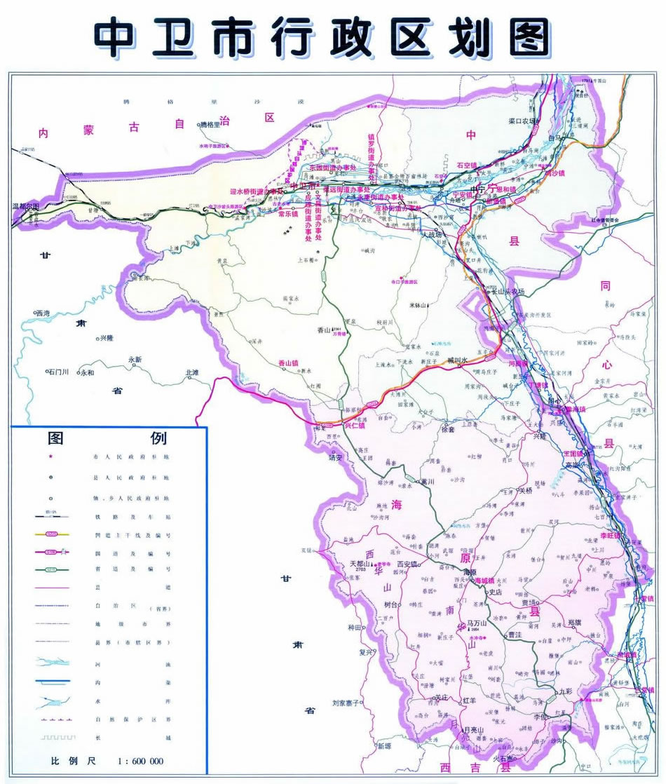 中寧縣 面積3369.58平方千米,人口33.40萬(wàn),政府駐寧安鎮(zhèn),下轄6個(gè)鎮(zhèn)、6個(gè)鄉(xiāng)