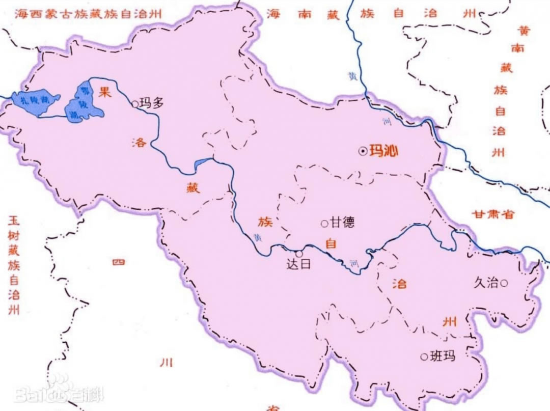 瑪沁縣 面積13400平方千米,人口48445,政府駐大武鎮(zhèn),下轄2個鎮(zhèn)、6個鄉(xiāng)
