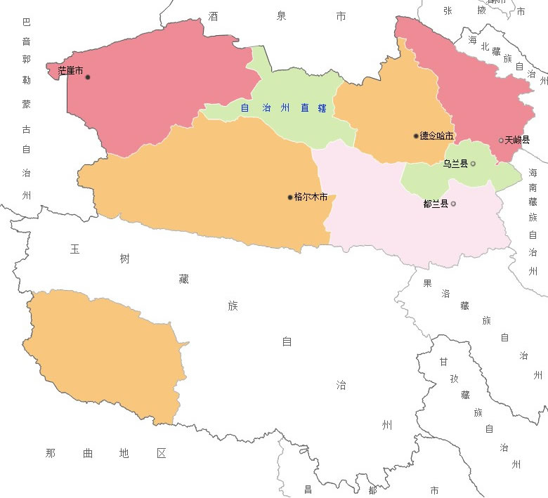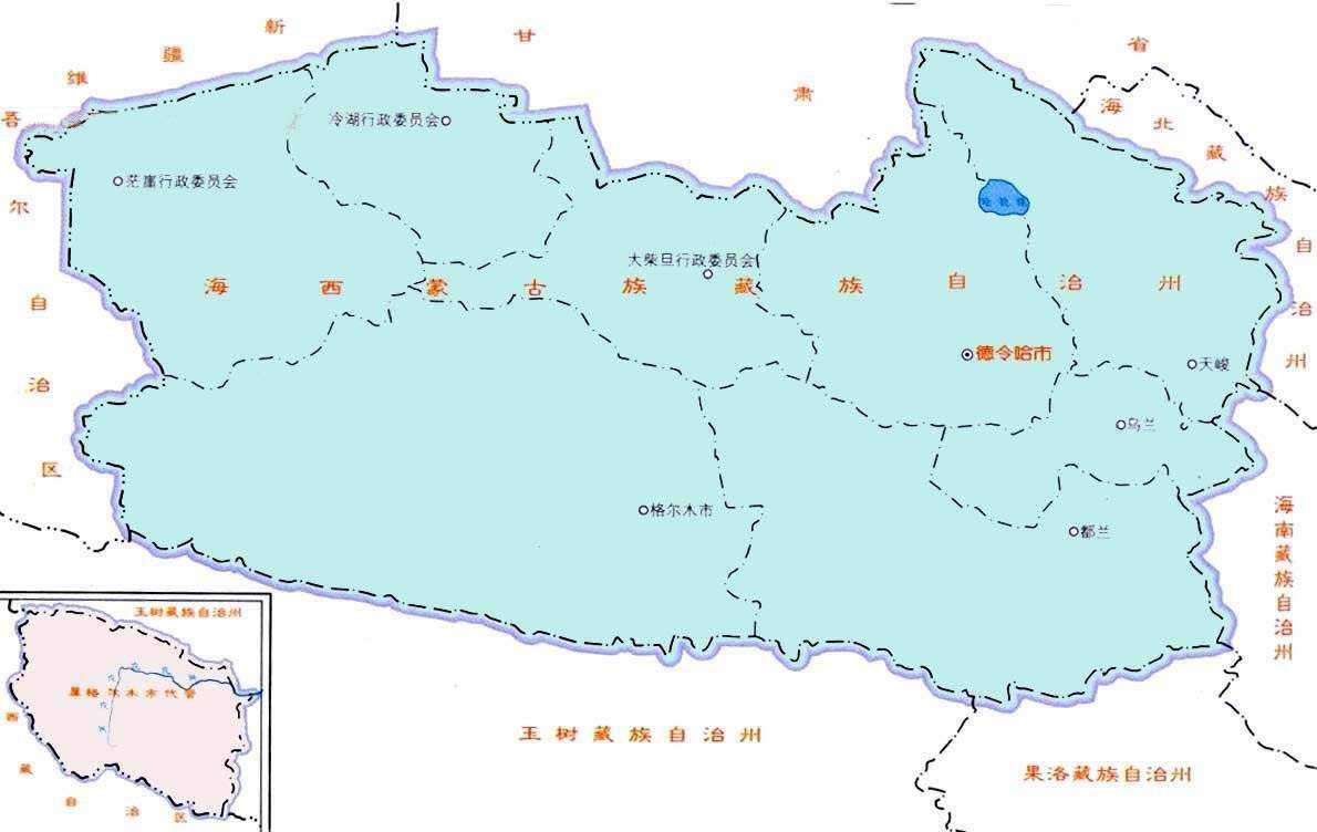 海西蒙古族藏族自治州轄3個縣級市、3個縣:
