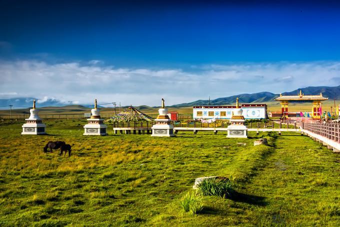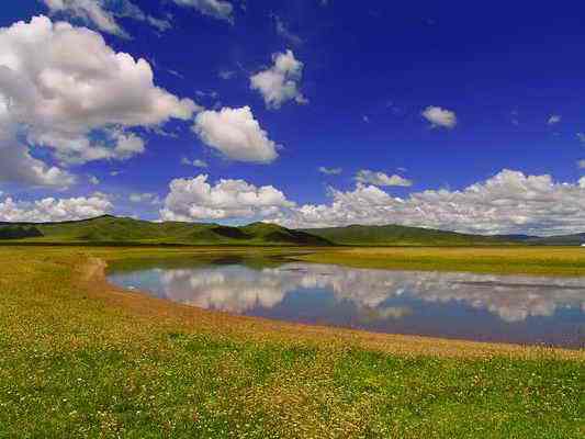 金銀灘的黃金季節(jié)是7、8、9三個月,鮮花盛開,百鳥飛翔,尤其是百靈鳥兒的歌聲,動聽迷人。這里是一片碧草如茵的大草原。浮云般的羊群,棕黑相間的牦牛,星星點(diǎn)點(diǎn)地徜徉在青草和野花叢中。穿著藏服的藏民,騎著駿馬悠然地在草原上緩緩而來。遠(yuǎn)處,山巒起伏,偶有雄鷹飛過的身影,蓮花般的蒙古包散落在白云深處。金銀灘草原牧草肥美、牛羊肥壯,人們以金銀遍地來形容這片美麗而富饒的土地,故得名“金銀灘”。