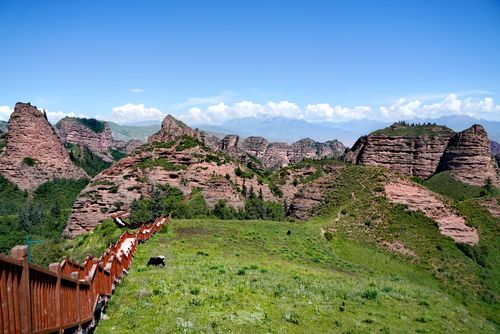 “拉毛”在藏語中是仙女的意思,“拉毛崗”在這就可理解為是仙女守望的地方。仙女們依此南望,是一派奇峰兀立、丹山優(yōu)渥的景象,她們屹立在茂密的原始森林中,隱現在云霧之間,匯聚成了黃河流域最大、最富有神韻的坎布拉丹霞地貌區(qū)。據統(tǒng)計,在周圍五十多平方公里范圍內,有上百座之多,占全國丹霞地貌區(qū)總面積的十分之一以上。