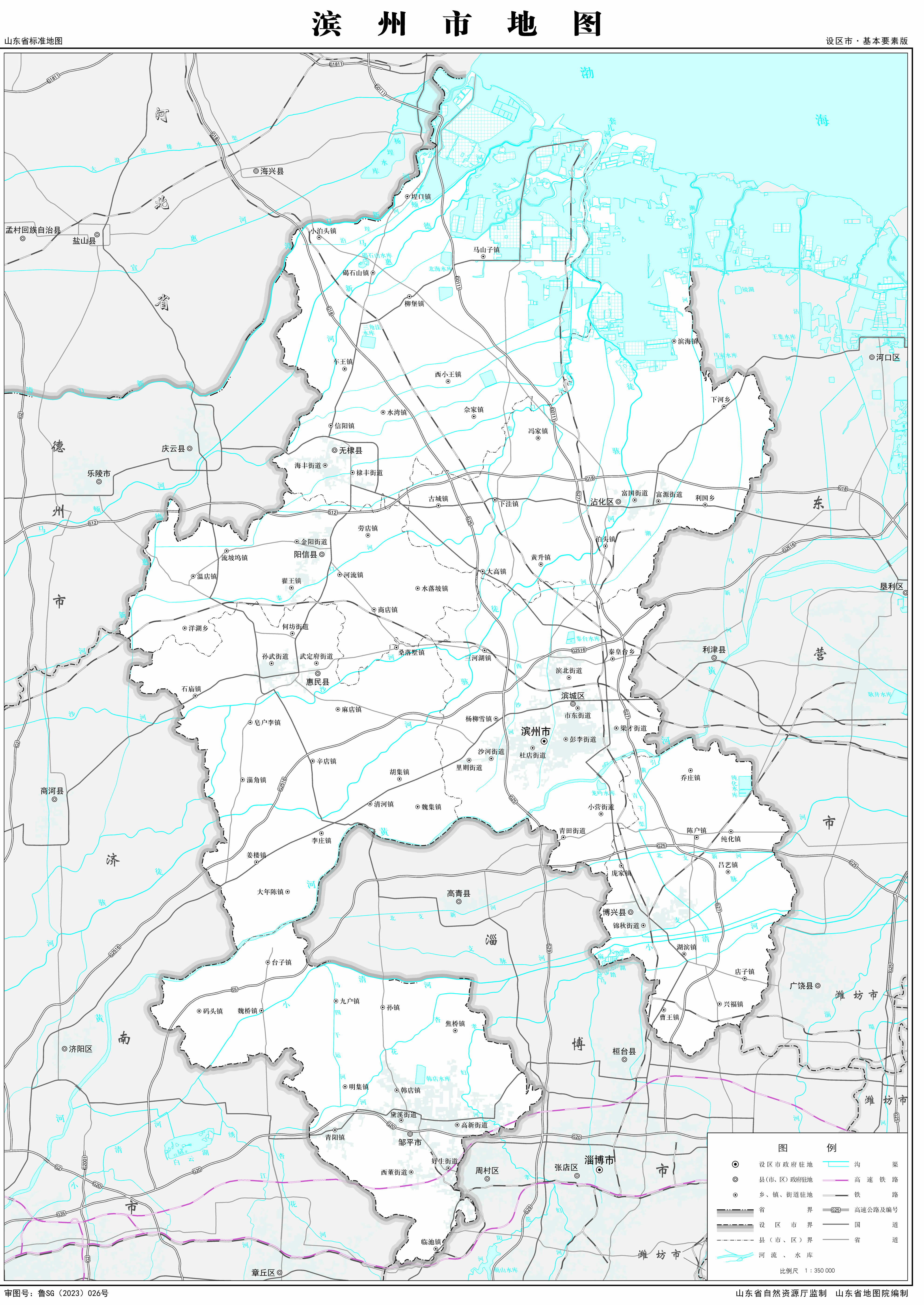 濱州市位于山東省北部、黃河三角洲腹地、渤海灣西南岸,北通大海、東臨東營市、南連淄博市、西南與濟(jì)南市交界、西與德州市接壤、西北隔漳衛(wèi)新河與河北省海興縣、黃驊市相望。全市境域橫跨黃河兩岸,東西最大跨徑120千米,南北最大跨徑175千米,總面積9660平方千米。