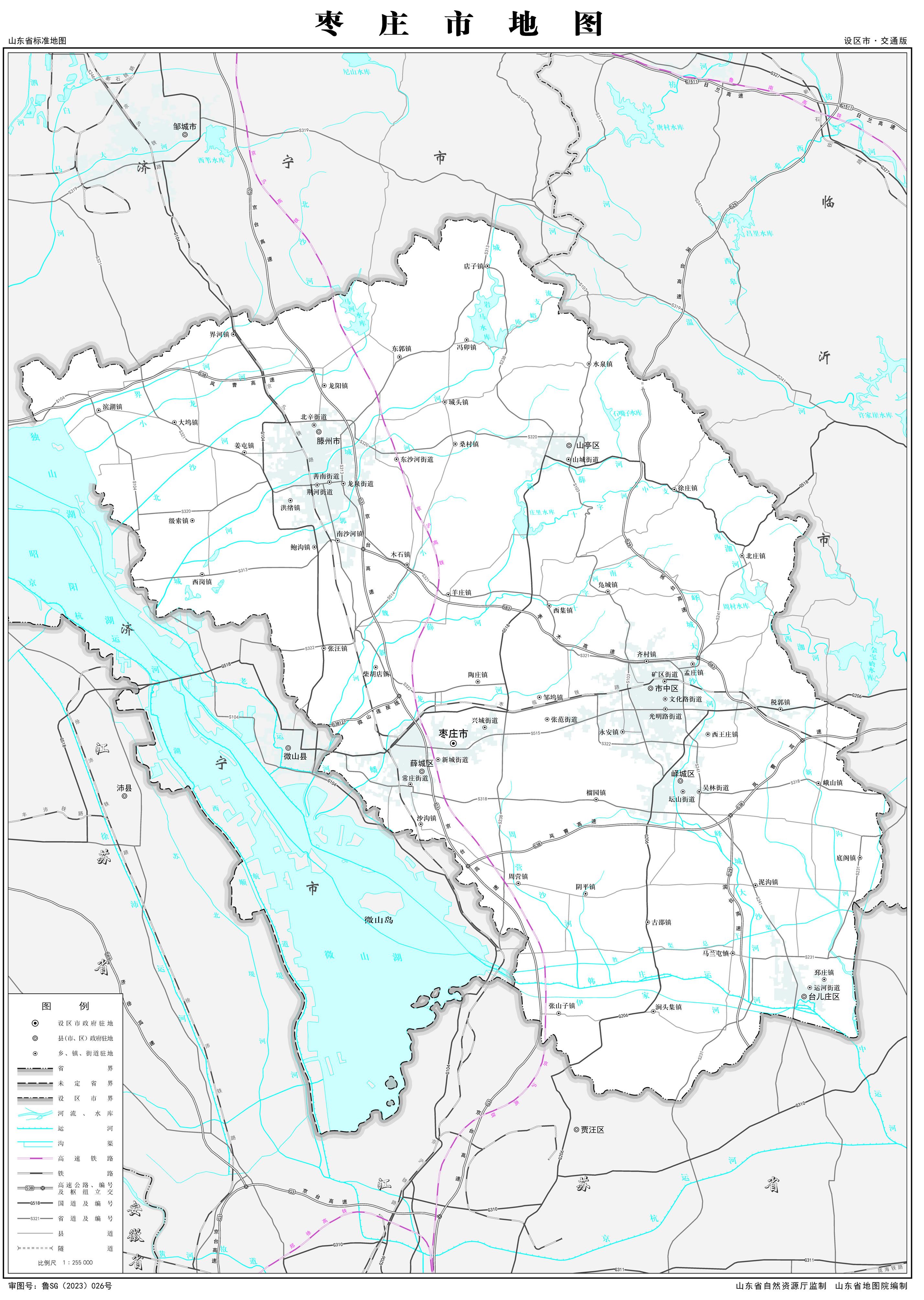 京臺高速公路、嵐菏高速公路、臨滕高速公路、棗木高速公路、濱臺高速公路、104國道、206國道、518國道貫穿棗莊市。