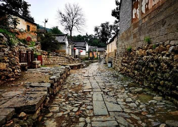 穿過(guò)已是斷墻殘?jiān)嫩组T、哨門,在泛著幽光的山石古道、石橋的引導(dǎo)下,走過(guò)一座座房檐上長(zhǎng)滿蓑草的石砌老屋,推開一扇扇斑駁的黑漆大門,都會(huì)找到些久遠(yuǎn)的故事。房前屋后那沉睡已久的石碾、石磨、石臼、石缸、古井和鑲在墻上的拴馬石,也都會(huì)成為那首古老鄉(xiāng)謠的美麗音符。