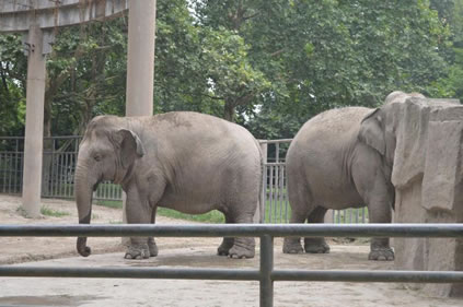 上海動物園飼養(yǎng)有國內(nèi)動物園少有的三代同堂的亞洲象家族。象展區(qū)包括象宮和象室外活動場兩部分。象宮建成于1955年,是上海動物園第一幢永久性的動物館舍,總建筑面積1550平方米,主要包括500平方米室內(nèi)活動場、620平方米參觀廳和100余平方米的4個門廳。室內(nèi)活動場的東、西、南三面都是寬9米的參觀廳,參觀廳進(jìn)出口的門廳東、西各有一個,南面分左右二個,南面二門廳間外有紫藤棚架相連。整個建筑的門窗都用杉木拼雕成具有民族風(fēng)格的圖形裝飾。