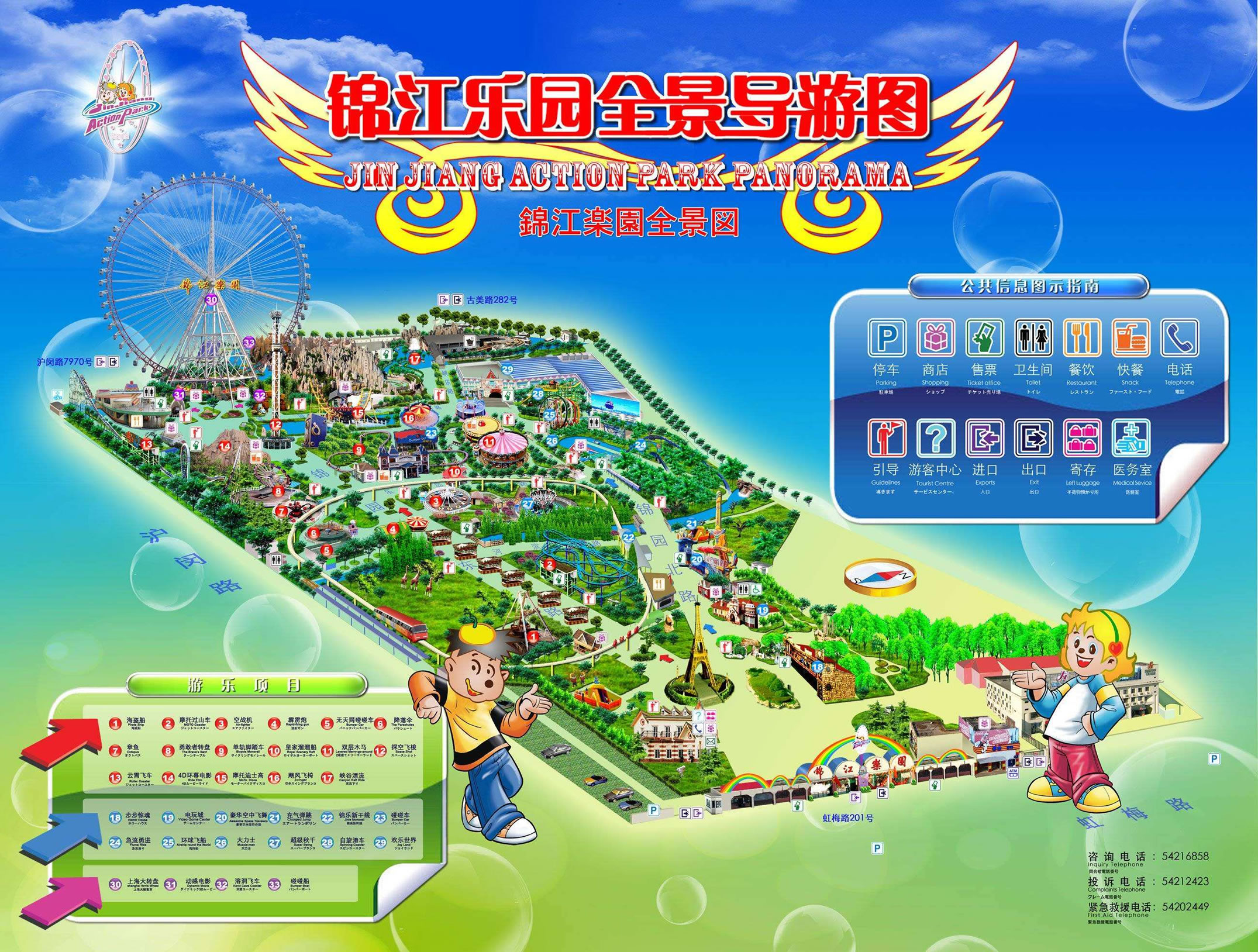 錦江樂園占地面積 11 萬平方米 ,現(xiàn)擁有 30 多項(xiàng)大中型游樂項(xiàng)目,F(xiàn)代化的游樂項(xiàng)目將娛樂、情趣、藝術(shù)造型和自然風(fēng)光奇妙地融于一體,給游客帶來休閑的樂趣。其中大部分機(jī)械旋轉(zhuǎn)項(xiàng)目全部從國外引進(jìn)。為了滿足中外游客日益增長的文化娛樂和健身需求,近年來錦江樂園不斷地增添了新的項(xiàng)目,先后引進(jìn)了國內(nèi)外領(lǐng)先的大型游樂項(xiàng)目“歡樂世界”、“峽谷漂流”、“探空飛梭”、“水上騎士”,并改進(jìn)了高架觀光火車“錦樂新干線”。二
