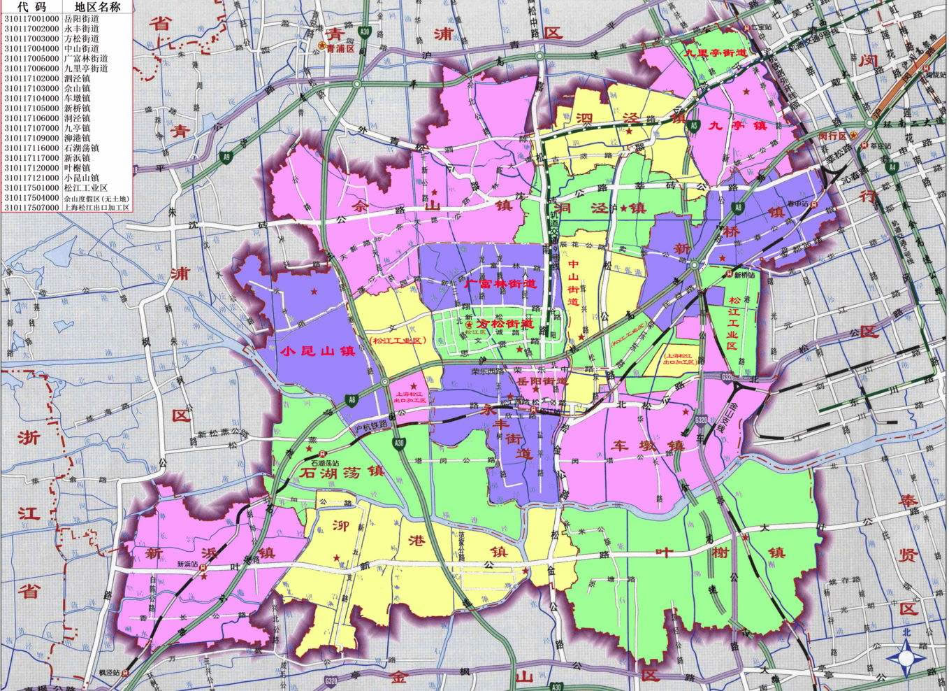 松江區(qū)轄11個(gè)鎮(zhèn)、6個(gè)街道:
