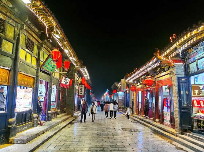 平遙古城的交通脈絡(luò)由縱橫交錯(cuò)的四大街、八小街、七十二條蚰蜒巷構(gòu)成。南大街為平遙古城的中軸線,北起東、西大街銜接處,南到大南門(迎熏門),以古市樓貫穿南北,街道兩旁,老字號(hào)與傳統(tǒng)名店鋪林立,是最為繁盛的傳統(tǒng)商業(yè)街,清朝時(shí)期南大街控制著全國百分之五十以上的金融機(jī)構(gòu)。被譽(yù)為中國的“華爾街”。西大街,西起下西門(鳳儀門)、東和南大街北端相交,與東大街呈一條筆直貫通的主街。著名的中國第一家票號(hào)——日升昌,就誕生于古城西大街,被譽(yù)為“大清金融第一街”。東大街,東起下東門(親翰門)、西和南大街北端相交,與西大街呈一條筆直貫通的主街。北大街,北起北門(拱極門)、南通西大街中部。