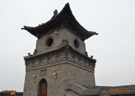 康熙四十三年(1703年)因皇帝西巡路經(jīng)平遙,而筑了四面大城樓,使城池更加壯觀。平遙城墻總周長6163米,墻高約12米,把面積約2.25平方公里的平遙縣城一隔為兩個(gè)風(fēng)格迥異的世界。