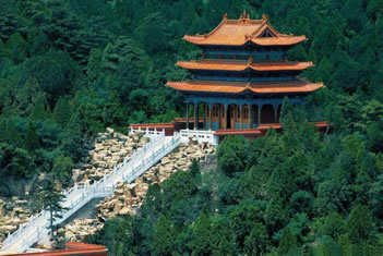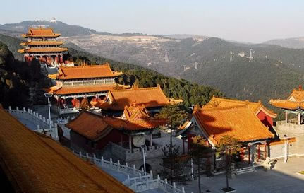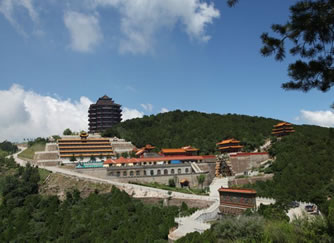 烏金山不僅有豐富的自然景致,而且還有數(shù)不盡的人文景觀。由于烏金山山高林密,氣候宜人,風景秀美,靜謐清幽,歷朝歷代多有僧侶入山修行,更有文人墨客、達官顯貴前來觀瞻,因此便留下了許多人文遺跡。這里是佛教圣地五臺山的下院,曾被稱為文殊菩薩講經(jīng)的道場,于是便形成了以寺廟群落為主的諸多景觀。許多寺廟群都依山而建,金碧輝煌,氣勢恢弘。這些寺廟群大都分布在千頃碧綠的林海中。遠遠望去,就像茫茫綠海中時隱時現(xiàn)的海市蜃樓,顯得縹緲奇幻而又雄偉壯觀。