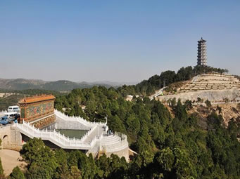 剁手和尚墓塔位于烏金山磚窯地,即水晶院西崖上,游園東側(cè),F(xiàn)重修墓塔,并塑剁手和尚漢白玉塑像,以示特別紀念。