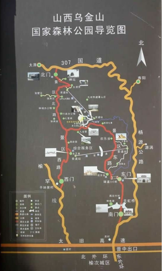 烏金山位于山西省晉中市榆次區(qū)境內(nèi),自古就是避暑勝地。北部與太原市相連,地勢北高南低,群山疊嶂,奇峰毓秀,海拔1200--1489米,有天然森林三萬畝,松柏密集,植被隆厚,白皮松婷婷玉立,側(cè)柏風姿卓然,油松蒼勁挺拔,冠蓋奇特?偯娣e5.5萬畝,森林面積3.1萬畝,森林覆蓋率達80%以上。境內(nèi)有佛教建筑水晶院、正壽寺、華嚴寺、和合寺、大佛臺、西晉王廟遺址,又有道教建筑太清宮、呂洞賓詞碑、玉皇閣、龍王廟、五爺廟、九峰塔以及孔祥熙避暑別墅等景點。
