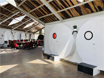 蝸牛公寓位于云岡石窟景區(qū)東山,是東山菩提藝術區(qū)的一部分,由云岡石窟研究院主導創(chuàng)意,用廢舊水泥管、廢舊鋼鐵等廢舊材料打造出來的綠色環(huán)保寫生建筑。走進“蝸牛公寓”,內(nèi)含會客廳、28間臥室,洗漱臺、衛(wèi)生間,其中地下公共部分還配有電影放映室、臺球室、酒吧、咖啡廳等公共休閑娛樂設施,長廊的墻壁,藝術家或藝術院校學生可以隨意涂鴉。這個特別隨意且有藝術范兒的空間,為到云岡石窟景區(qū)寫生創(chuàng)作、旅游休閑的人們提供了優(yōu)質舒適的住宿、創(chuàng)作、娛樂空間。