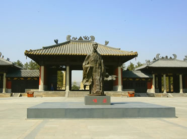 曇曜廣場位于云岡石窟景區(qū)入口處,占地6000多平方米,是為紀念云岡石窟的開創(chuàng)者曇曜高僧而建。整個廣場及亭廊建筑渲染著濃重的北魏皇家氣象,廣場中央的曇曜雕塑以瀟灑大器的寫意手法,塑造了一代佛門大德的藝術形象,高古清逸,似篳路藍縷,風塵仆仆,卻是袈裟飄逸,似乎從千年前的塵埃中走來。公元460年,北魏文成帝復興佛法,命曇曜高僧主持開鑿了規(guī)模宏大的云岡石窟,因此,曇曜不僅是開鑿云岡石窟的創(chuàng)始人,也是北魏著名的佛學大師和譯經(jīng)大家,是北魏佛教昌盛的奠基人。