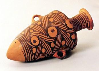 從半坡遺址中看到的大量絢麗多彩的陶器,表明這一時(shí)期的文化為彩陶文化。其繪畫(huà)作品有的豐富生動(dòng),有的神秘難測(cè),有的則圖案化,多繪在盆、缽、罐、細(xì)頸壺上,繪畫(huà)作品多繪在小口器肩,腹和口部,直口器多繪在外壁或口緣外側(cè),大口器多繪于器內(nèi)壁。多見(jiàn)黑彩,還有少量紅彩。