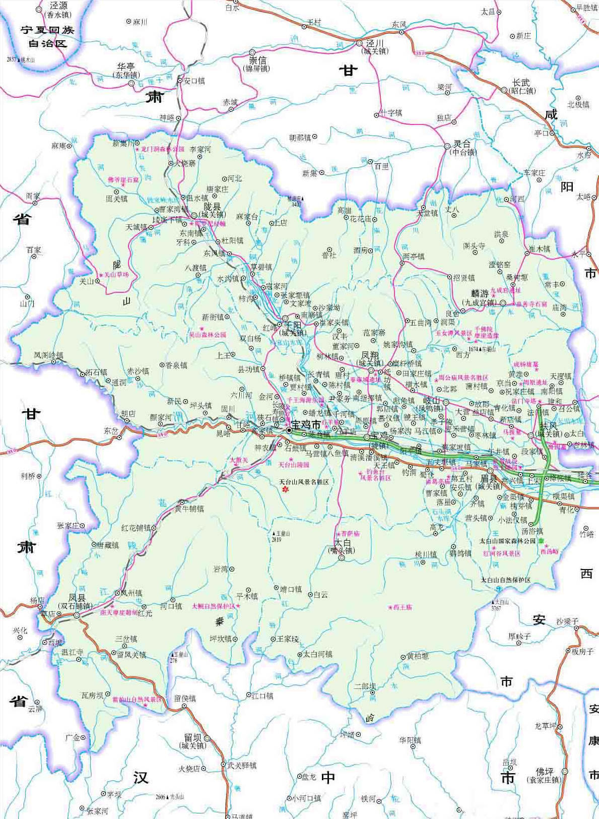 寶雞市轄4個(gè)市轄區(qū)、8個(gè)縣: