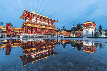 大唐芙蓉園,位于陜西省西安市雁塔區(qū)大雁塔東南側(cè),占地面積1000畝,其中水域面積300畝。大唐芙蓉園是在原唐代芙蓉園遺址以北,仿照唐代皇家園林式樣重新建造的,是中國第一個(gè)全方位展示盛唐風(fēng)貌的大型皇家園林式文化主題公園。