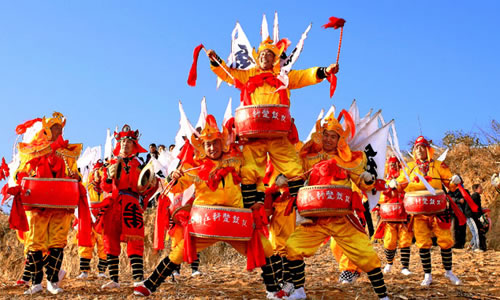 洛川蹩鼓主要流傳于陜西省洛川縣黃章、永鄉(xiāng)、舊縣等鄉(xiāng)村,為著名的"陜西三大鼓"(宜川胸鼓、安塞腰鼓、洛川蹩鼓)之一,陜西方言稱"蹦跳"為"蹩",此舞以蹦跳為特征,故稱"蹩鼓"。洛川蹩鼓最大的特點是在蹦跳中完成各種舞蹈動作。"蹩鼓"流傳于延安地區(qū)洛川縣,以縣東北的黃章、永鄉(xiāng)、舊縣等鄉(xiāng)鎮(zhèn)較為普遍,表演時,鼓手腹前挎?zhèn)直徑約50厘米的扁圓鼓,邊擊鼓、邊蹦跳。洛川蹩鼓是從戰(zhàn)國時期傳承至今.相傳是戰(zhàn)國時期士兵為了慶祝勝利和軍陣演變而來.蹩鼓表演在國內(nèi)多次獲得大獎。2006年5月20日,洛川蹩鼓經(jīng)國務(wù)院批準(zhǔn)列入第一批國家級非物質(zhì)文化遺產(chǎn)名錄。