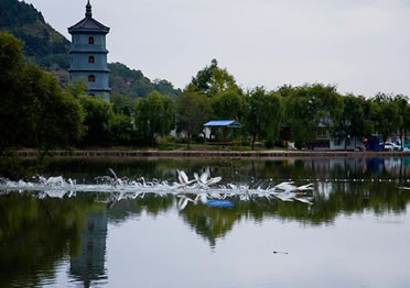 玉華宮東宮也叫郭玉溝,樹木郁蔥,清泉細流,天然巖窟鬼斧神工,人文景觀與自然景色渾然一體,若仙境一般。初春,山花爛漫,到玉華宮賞花,沉醉于山花爛漫之中,流連忘返;盛夏,溪回松風(fēng),曠然神怡,到玉華宮避暑,置身天然氧吧,感受郭玉溝的清爽和寧靜;金秋,秋菊盛開,色彩斑斕,到玉華宮游園,體驗陶淵明“采菊東籬下,悠然見南山”的閑情;隆冬,銀裝素裹,冰雕燈展 喜迎四方游客。