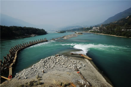 都江堰是當(dāng)今世界年代久遠(yuǎn)、唯一留存、以無壩引水為特征的宏大水利工程。它充分利用當(dāng)?shù)匚鞅备摺|南低的地理?xiàng)l件,根據(jù)江河出山口處特殊的地形、水脈、水勢,乘勢利導(dǎo),無壩引水,自流灌溉,使堤防、分水、泄洪、排沙、控流相互依存,共為體系,保證了防洪、灌溉、水運(yùn)和社會用水綜合效益的充分發(fā)揮。它最偉大之處是建堰2250多年來經(jīng)久不衰,而且發(fā)揮著愈來愈大的效益。