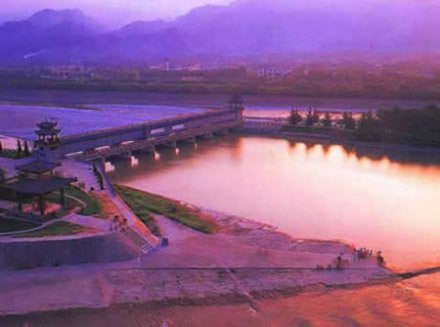 都江堰,位于四川省成都市都江堰市城西,坐落在成都平原西部的岷江上,是由渠首樞紐(魚嘴、飛沙堰、寶瓶口)、灌區(qū)各級引水渠道,各類工程建筑物和大中小型水庫和塘堰等所構(gòu)成的一個(gè)龐大的工程系統(tǒng),渠首占地面積200余畝。 它擔(dān)負(fù)著四川盆地中西部地區(qū)7市(地)40縣(市、區(qū))1130萬余畝農(nóng)田的灌溉、成都市多家重點(diǎn)企業(yè)和城市生活供水,以及防洪、發(fā)電、漂水、水產(chǎn)、養(yǎng)殖、林果、旅游、環(huán)保等多項(xiàng)目標(biāo)綜合服務(wù),是四川省國民經(jīng)濟(jì)發(fā)展不可替代的水利基礎(chǔ)設(shè)施。